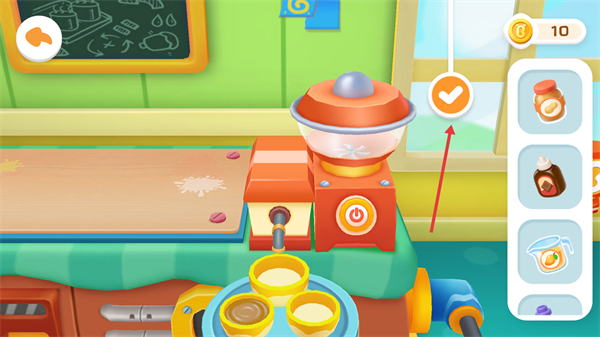 4、每完成一个制作步骤,会出现确认标识,点击确认继续下一步,逐步完成冰淇淋的制作。