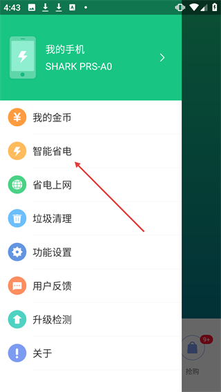 2、在功能列表中点击【智能省电】,进入智能省电设置界面。