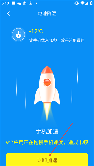 4、在手机加速提示界面点击【立即加速】,完成手机加速操作。