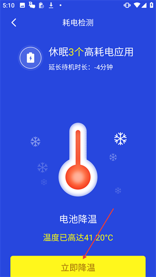 3、在电池降温提示界面点击【立即降温】,进行电池降温操作。