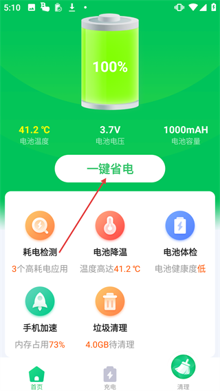 1、在电池优化首页点击【一键省电】,进入耗电检测流程。