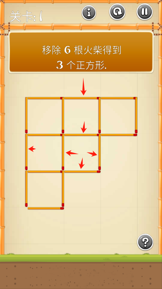3、点击选择画面中的6根火柴,最终只剩下三个正方形即可。