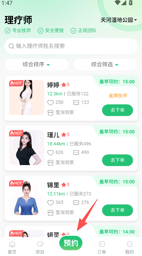 3、构建完整预约链条,从理疗师选择到项目浏览再到订单提交,覆盖理疗预约全环节,实现一站式理疗服务预约。