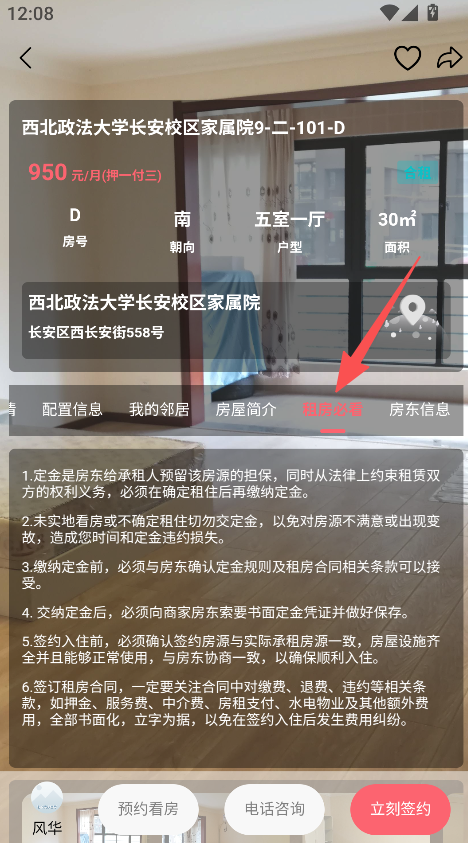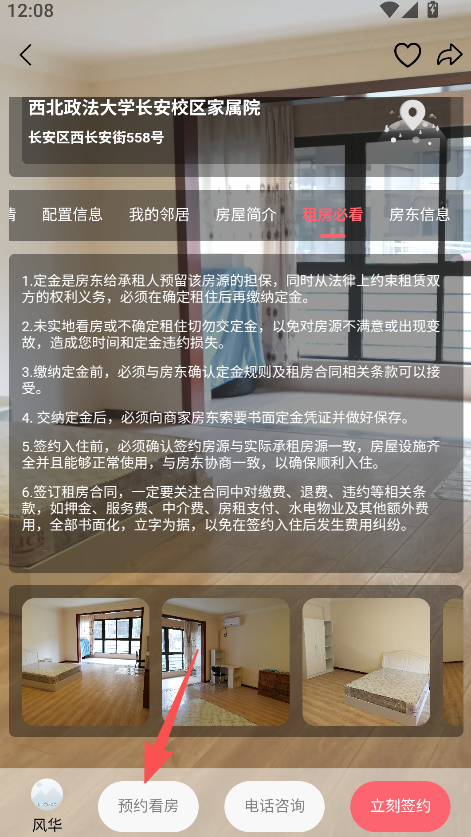 3、点击预约看房或立刻签约,推进租房流程。