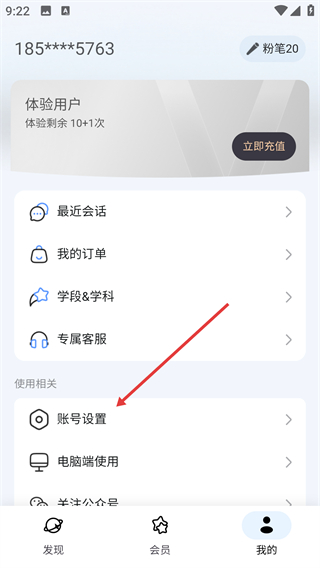 2、在个人中心页面点击【账号设置】选项,进入设置页面。