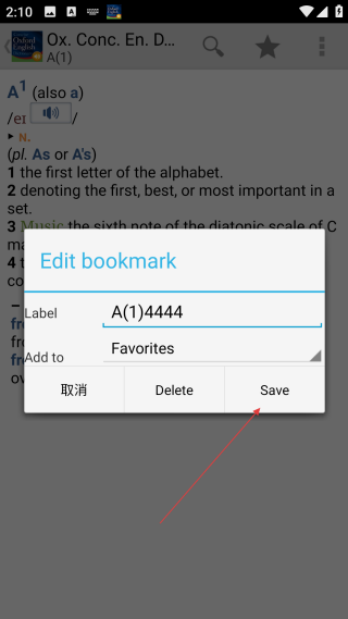 4、编辑完成后,点击【保存】,即可完成词条收藏操作。
