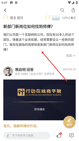 4、在问答详情页面可查看问题描述和导师回答,完成问答学习操作。