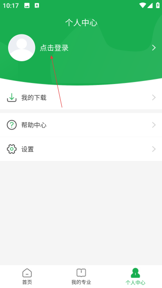 2、在个人中心页,点击【点击登录】,进入账号登录的选择界面。