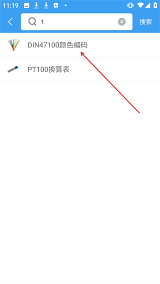 3、在搜索结果中,点击【DIN47100颜色编码】可查看其详细内容。