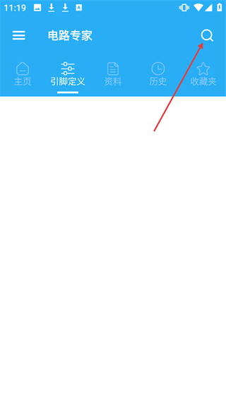 1、在电路专家应用的引脚定义界面,点击右上角搜索图标可进入搜索功能。
