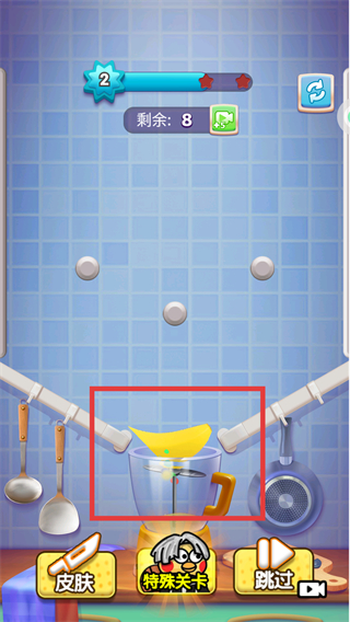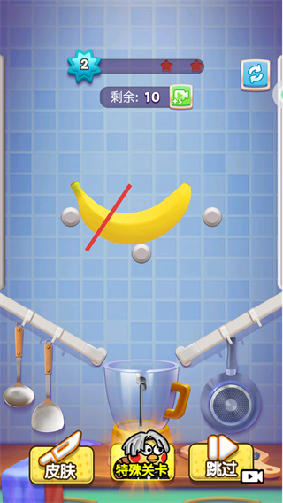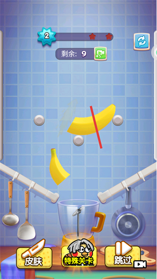 1、在关卡中,用红色切割线切割香蕉,将其分成多段。