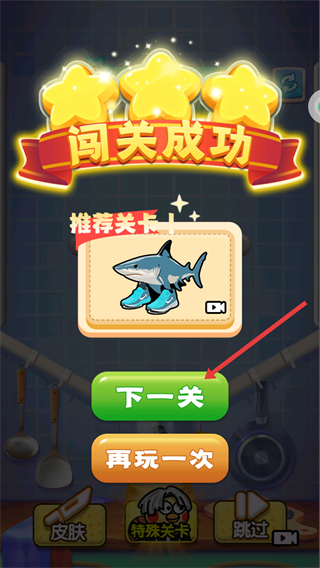 4、闯关成功后,点击绿色【下一关】按钮,进入下一个关卡继续挑战。
