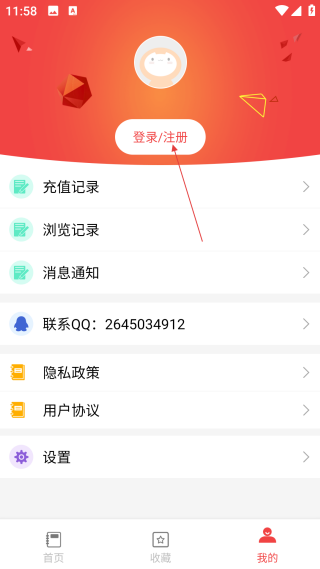 2、在个人中心页,点击【登录/注册】,进入账号登录的选择界面。