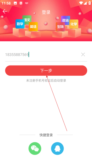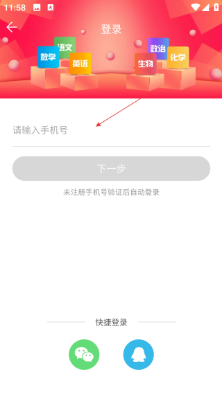 3、在登录页输入【手机号】,准备进行账号的验证登录。