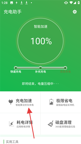 1、在【充电助手】主界面点击【充电加速】,进入充电加速页面。