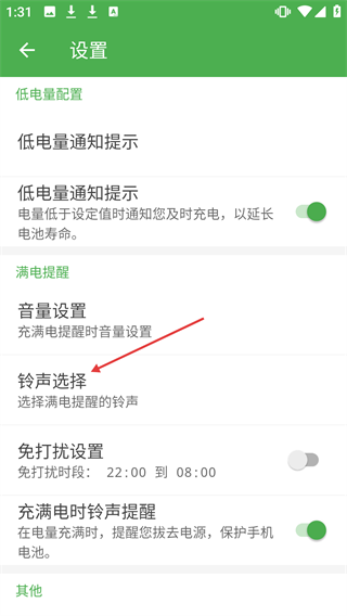 2、在【设置】中点击【铃声选择】,进入铃声选择界面。