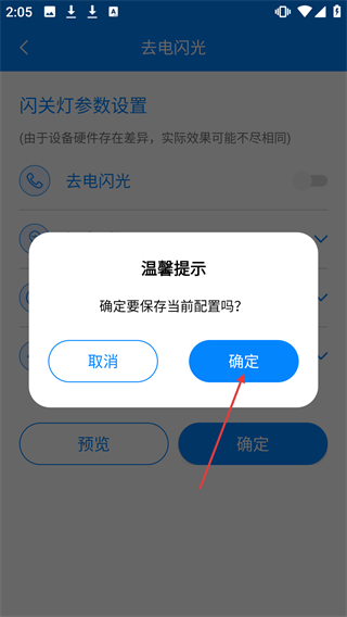 2、在去电闪光参数设置页面配置好参数后,点击【确定】。