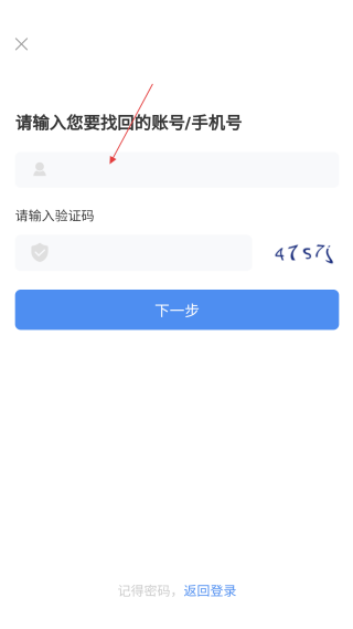 3、填好账号后点击【验证码输入框】,准备填写对应的验证字符。