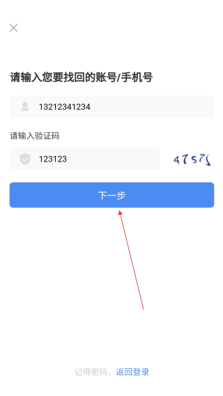 4、填好验证码后,点击【下一步】,即可继续完成密码找回的流程。