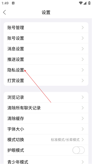 2、在设置页面,选择【隐私设置】选项,进入隐私相关的管理界面。