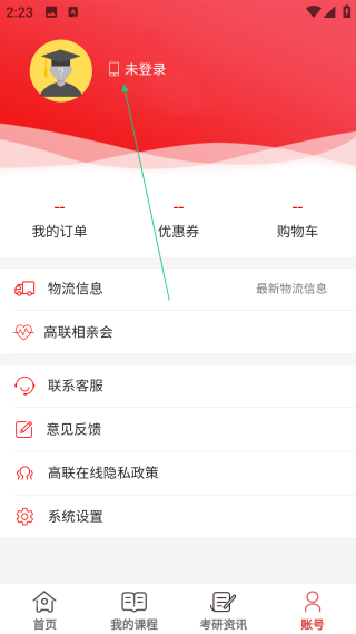 2、在账号页,点击【未登录】区域,进入账号登录的选择界面。