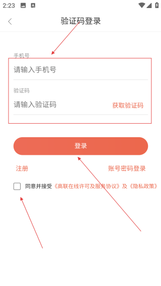 4、在填写页,输入【信息并勾选协议】点击【登录】,即可完成账号登录操作。