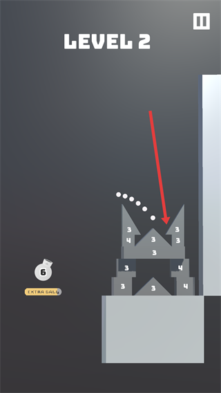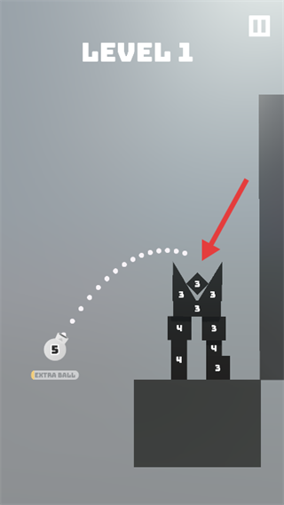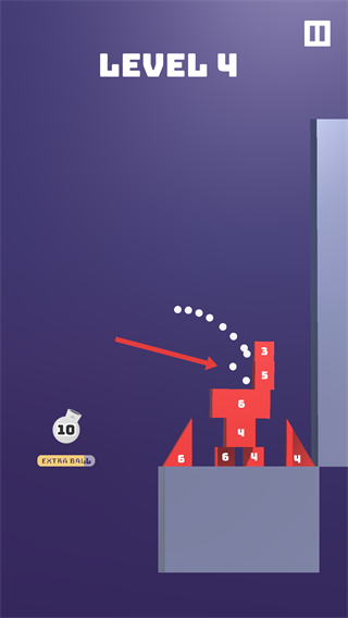 4、进入Level4,发射炮弹攻击带有数字的红色方块,消除方块以完成关卡。