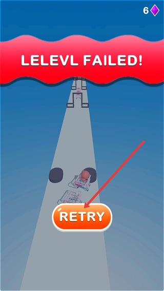 4、若游戏失败,点击橙色【RETRY】按钮,重新开始游戏。