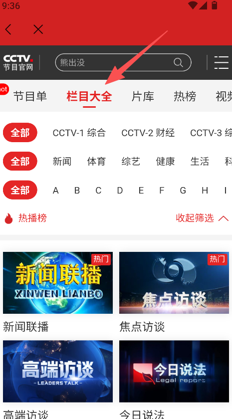 2、进入栏目大全,筛选栏目类型,查找心仪栏目。