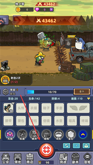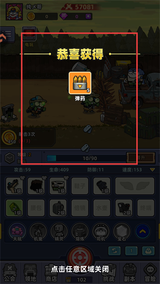 2、战斗时,点击射击按钮发起攻击,应对场景中的敌人(如僵尸),积累战斗经验和资源。