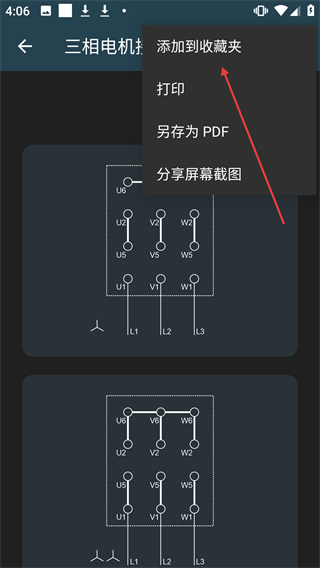 4、在展开的选项中点击【添加到收藏夹】,可将该接线图收藏以便后续查看。