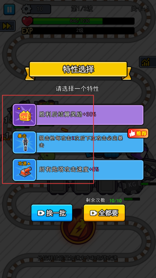 4、在特性选择界面挑选一个特性,增强后续战斗的能力,提升关卡挑战优势。