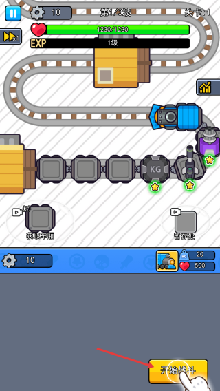 1、拖动下方的道具到轨道的车厢位置,配置战斗道具,为后续的关卡战斗做准备。