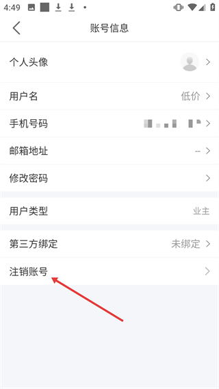 3、在账号信息页面点击【注销账号】,进入账号注销页面。