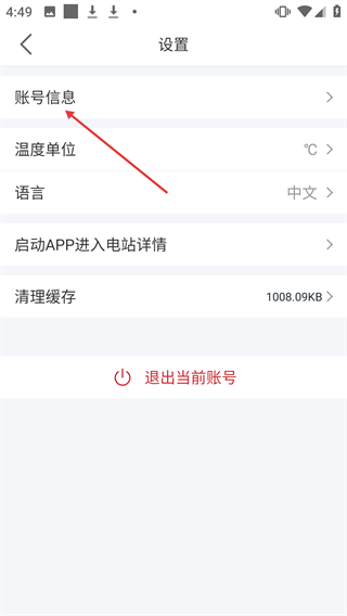 2、在设置页面点击【账号信息】,进入账号信息页面。