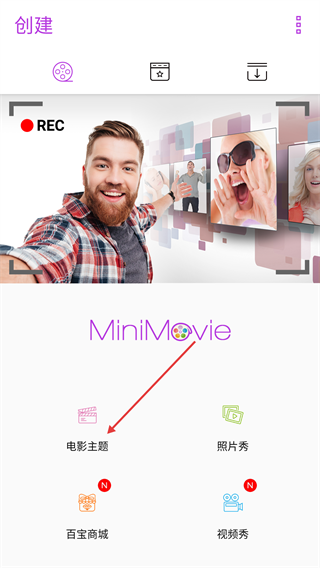 1、进入软件,点击【电影主题】,进入选择照片页面。