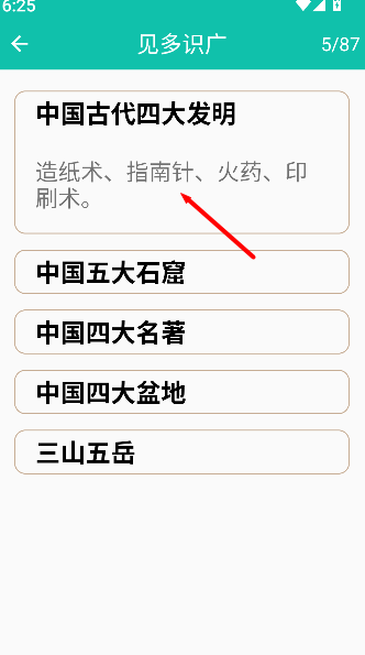 2、在课程页面中浏览“国四大发明”相关知识,可依次查看造纸术、指南针、火药、印刷术的介绍。