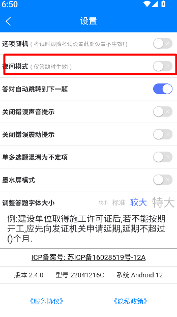 3、在设置页面中找到“夜间模式”选项,将其开启即可完成调整。