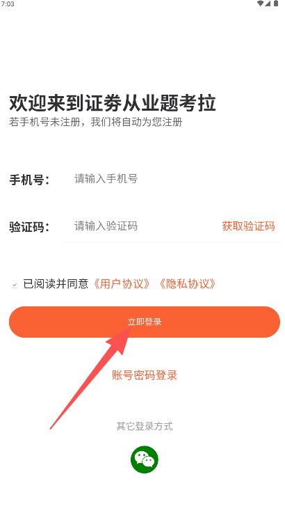1、输入手机号与验证码并勾选协议后点击立即登录完成注册登录。