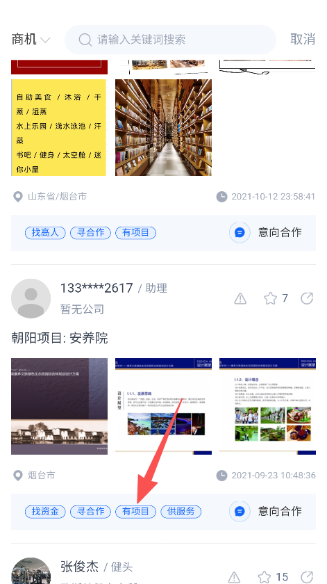 2、拥有项目合作功能,提供有项目等多种类型选择,清晰分类项目合作需求,助力商业项目高效对接,推动项目落地。