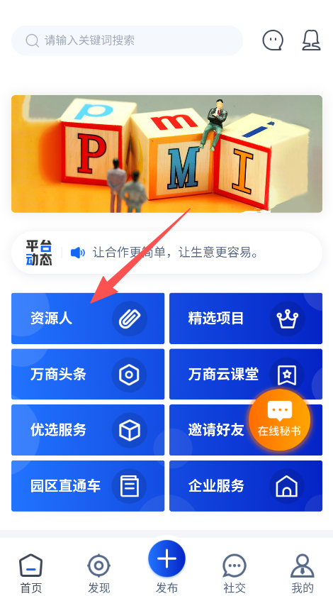 3、进入资源人板块,寻找商业资源伙伴。