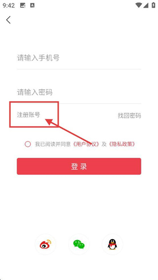 3、在登录界面,选择【注册账号】选项,可跳转至账号注册页面。