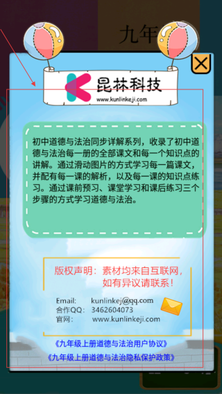包名:com.kunlinkeji.chuzhondaode05