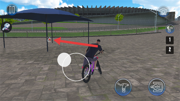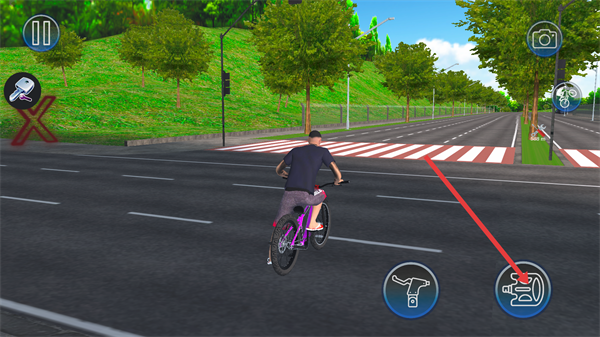 2、在骑行界面,点击右下角的前进按钮,控制角色骑行前进,探索游戏道路。