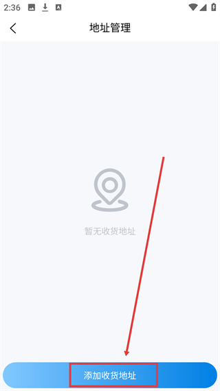 3、进入【地址管理】页,点击底部的【添加收货地址】按钮。
