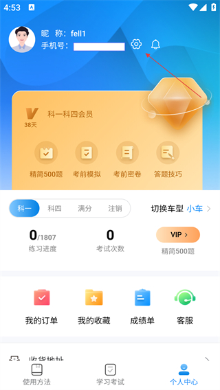 2、在个人中心页面,点击顶部的设置图标,进入应用的设置界面。