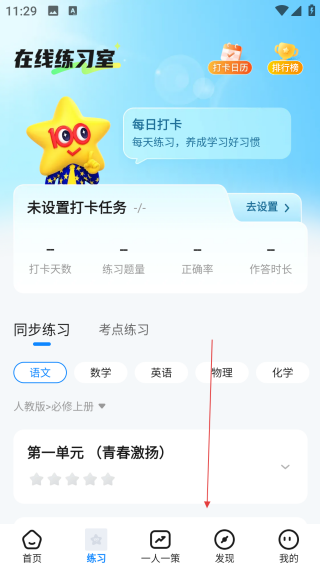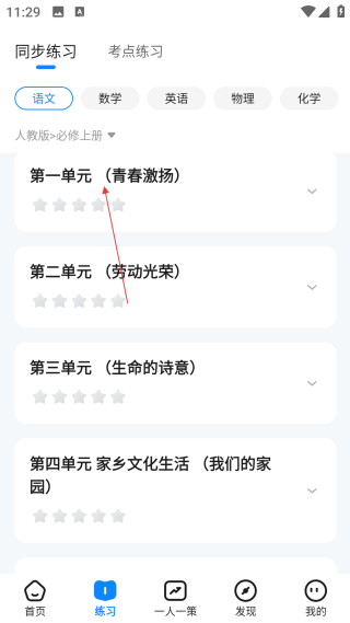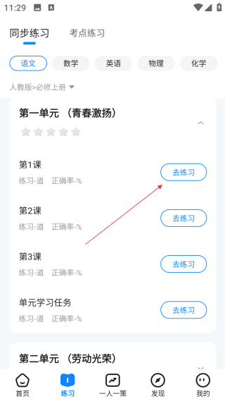 4、选择单元内的课程,点击【去练习】即可开始对应内容的练习。