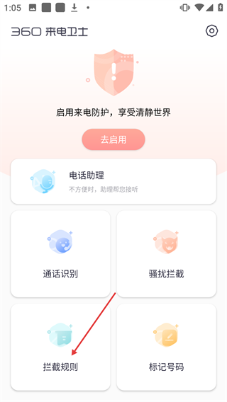 1、在360来电卫士界面点击【拦截规则】,进入拦截规则设置页面。