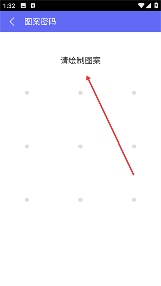 3、在图案密码绘制页面绘制图案,完成图案密码的设置。