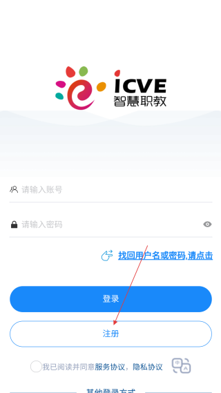 3、在登录页,点击【注册】选项,进入账号注册的信息填写页面。